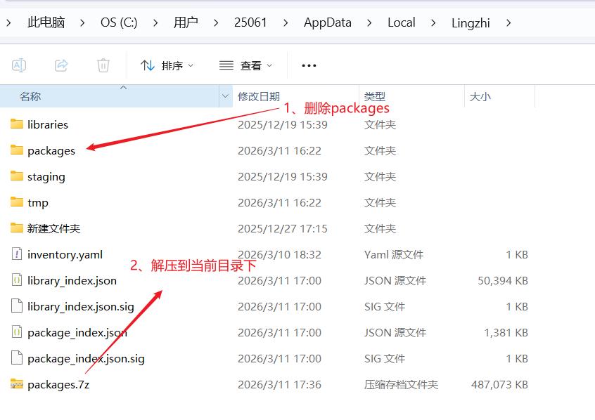 3、删除目录中已有的 packages 文件夹